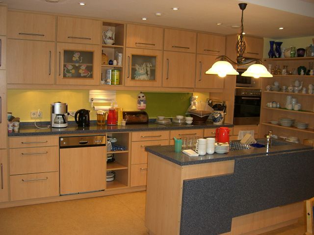 Auf der „Wohngruppe für Menschen mit Demenz“ wird ein davon abweichendes Raumkonzept mit kleineren Bewohnerzimmern, größeren Gemeinschaftsbereichen und einer integrierten Bewohnerküche umgesetzt. Alle Bewohnerbäder sind behindertengerecht gestaltet.