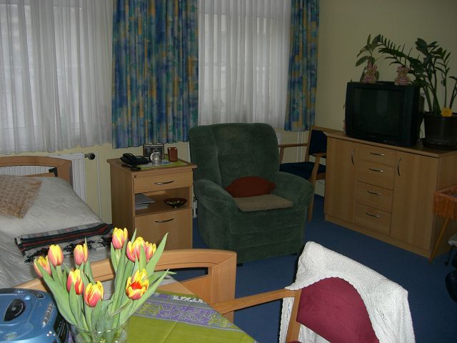 95 Bewohner können hier in den vier Pflegewohngruppen leben und ein Zuhause finden. Im Haus befinden sich für die Bewohner 17 Einzel- und 39 Doppelzimmer. Alle Zimmer sind freundlich eingerichtet und vermitteln den pflegebedürftigen Bewohnern eine private Atmosphäre. Kleinere Möbelstücke können gern mitgebracht werden. Anschlussmöglichkeiten für Fernseher sind vorhanden, ebenso für Telefon mit eigener Durchwahlrufnummer.