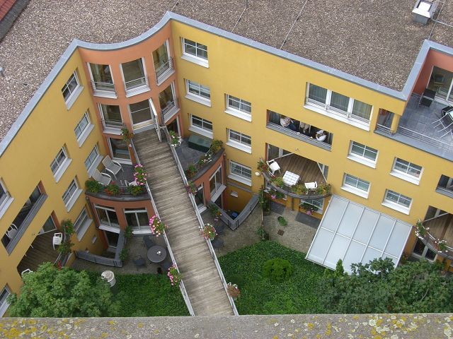 Von den Bewohnerzimmern besteht der Zugang zum Balkon oder zur Terrasse. Auf jeder Pflegewohngruppe befinden sich Aufenthalts- und Kreativräume.